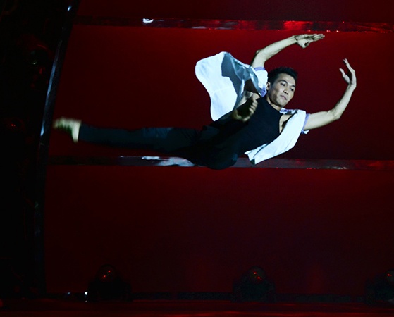 Thế Chung tận dụng từng giây trên sân khấu để phô diễn tài năng với các động tác đẳng cấp. |