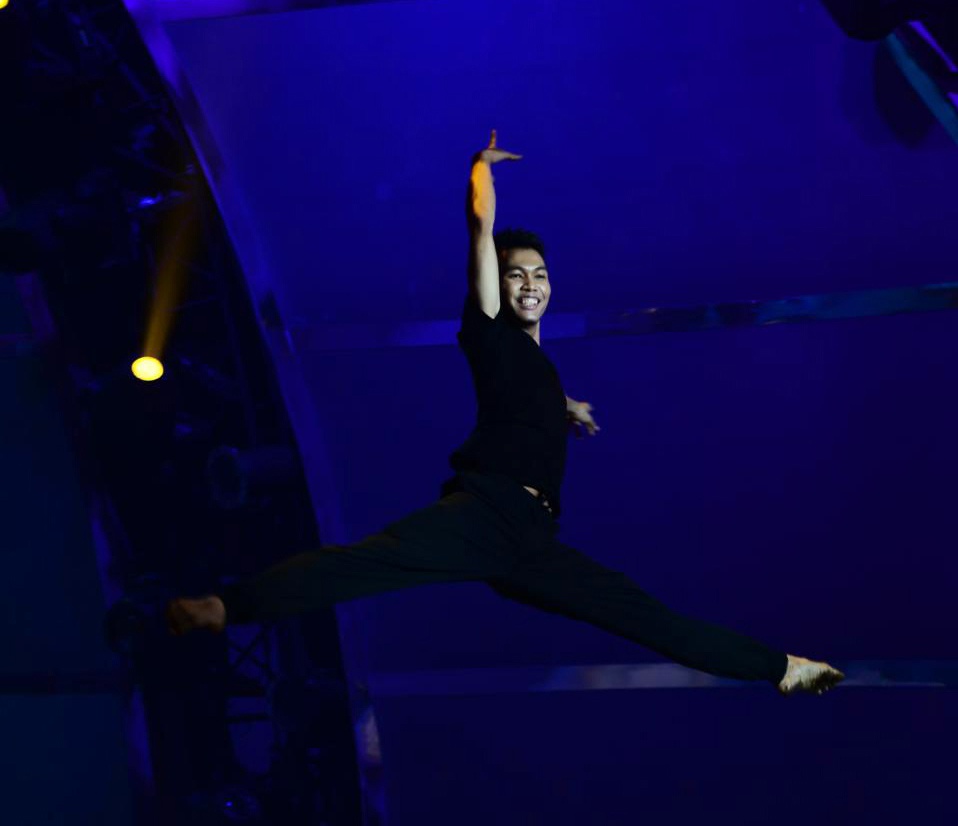Thế Chung làm ban giám khảo sửng sốt với kỹ thuật ba lê đỉnh cao. Chàng trai đến từ miền Trung chinh phục bằng những màn xé và xoạc chân trên không đầy ấn tượng. |