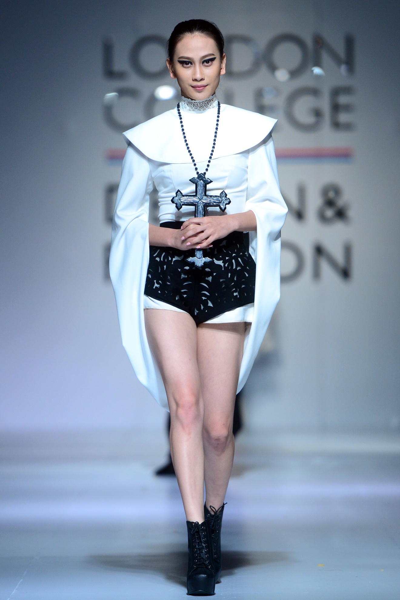 | Một BST đáng chú ý khác trong buổi trình diễn tốt nghiệp của học viên Học viện thời Trang London là Thánh Địa của NTK Nguyễn Diễm Quỳnh. |