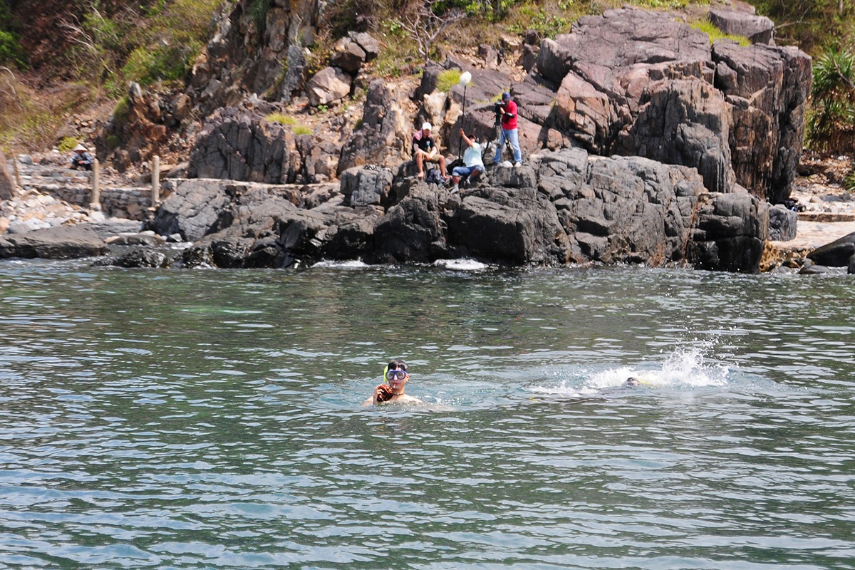 | Nhan Phúc Vinh ngụp lặn dưới biển để tìm kho báu. |