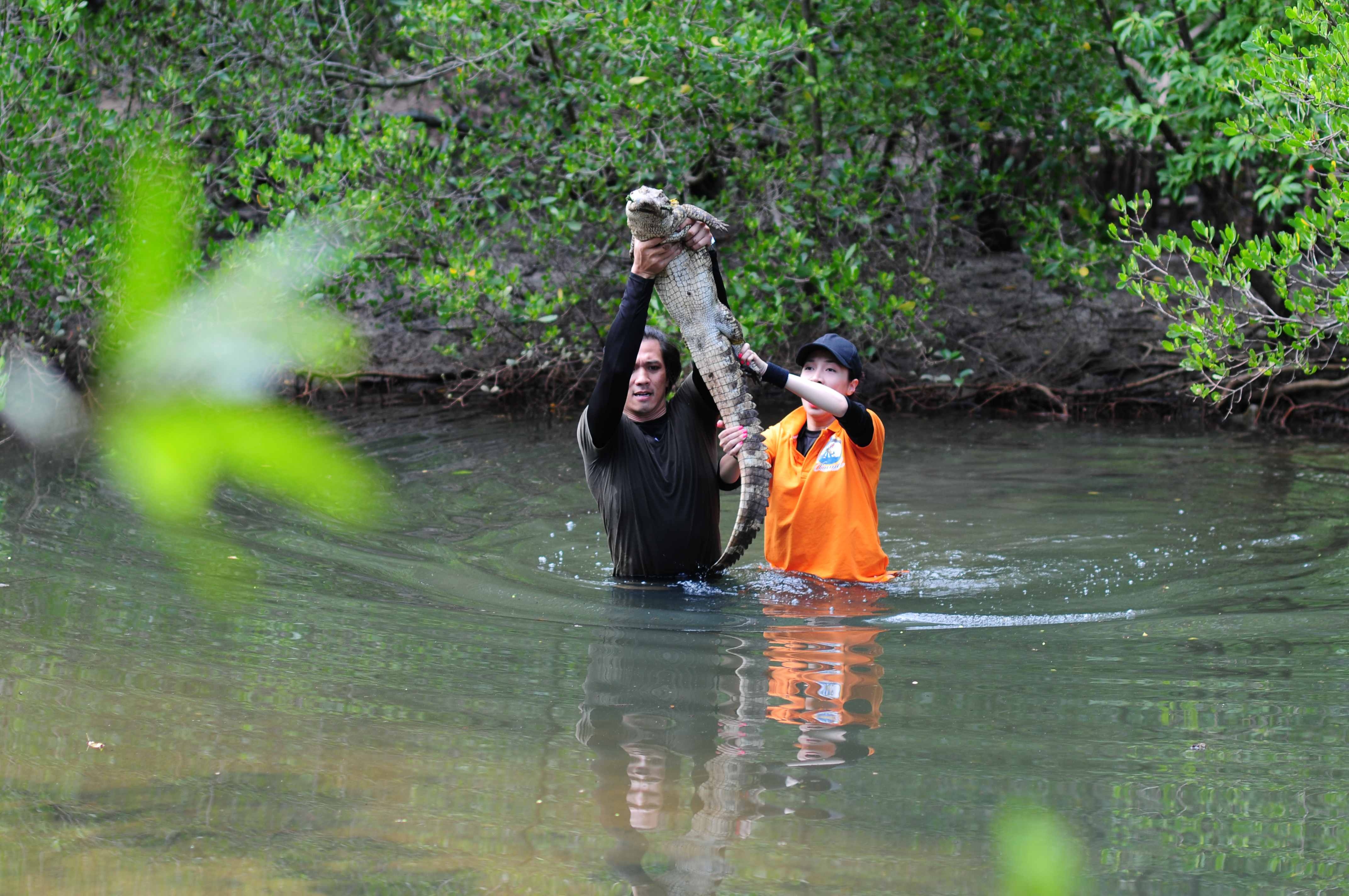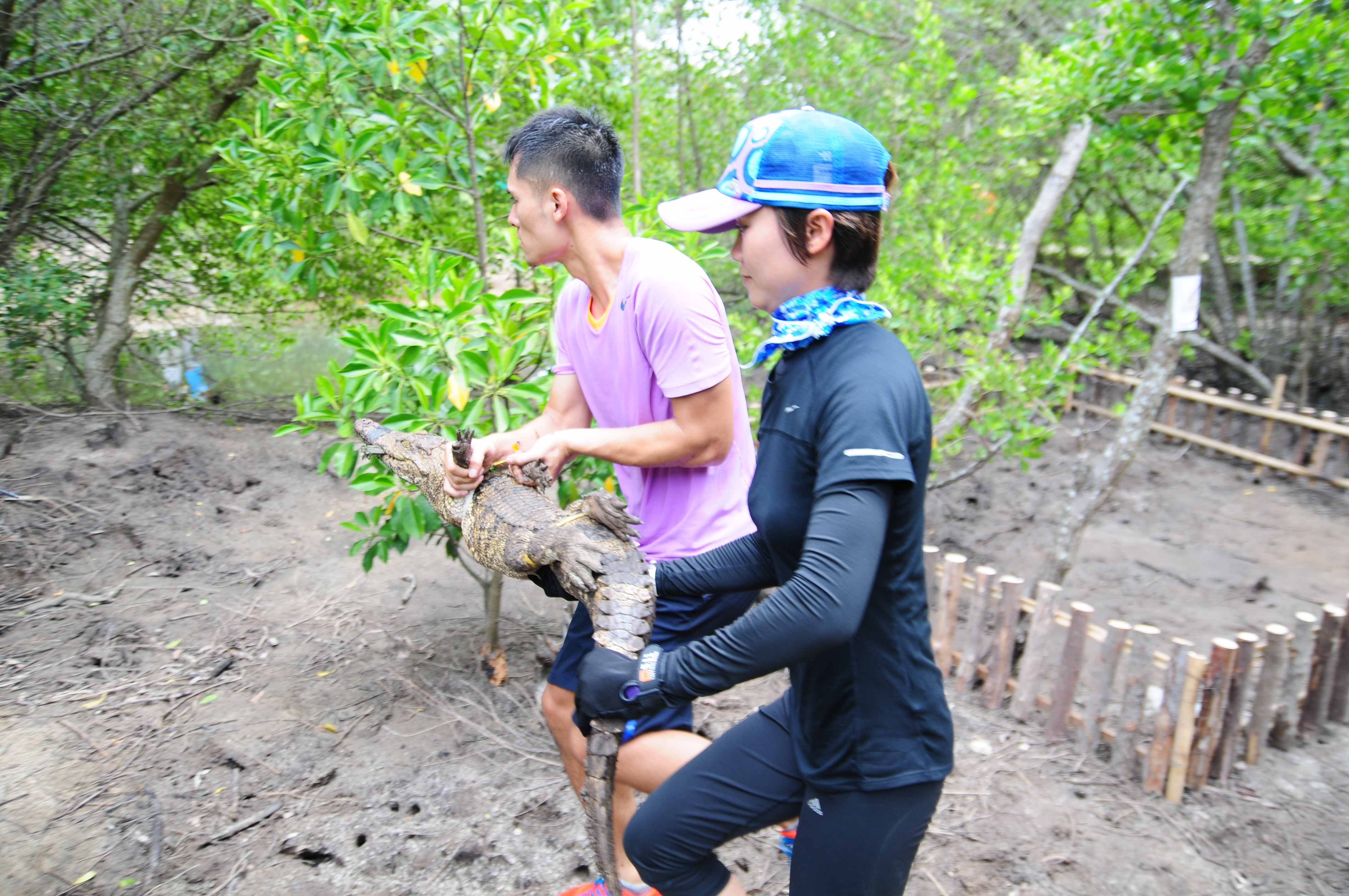 Trong khi đó, ôm cá sấu vượt suối có vẻ nhẹ nhàng hơn với các đội, vượt qua ấn tượng ban đầu có vẻ đáng sợ của những con cá sấu xù xì với cái đuôi liên tục ngọ nguậy, các tay đua đã giữ được bình tình để hoàn thành khá tốt thử thách này