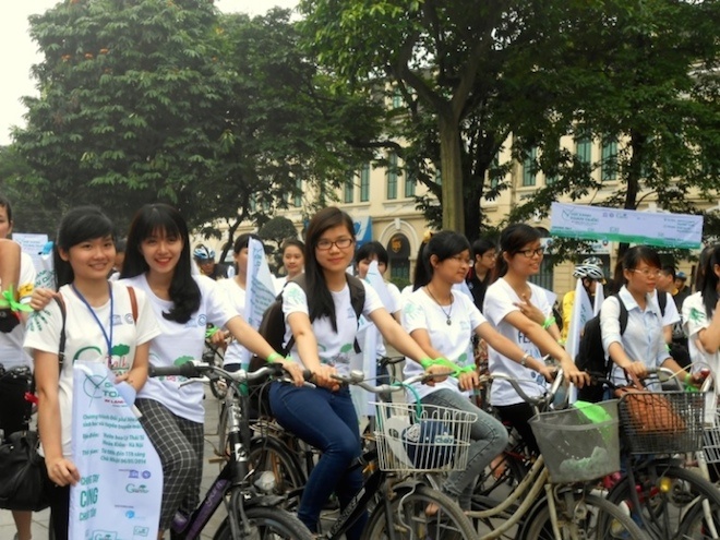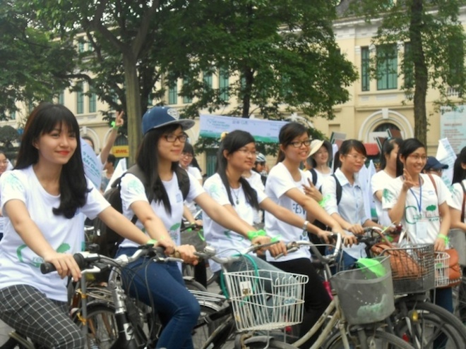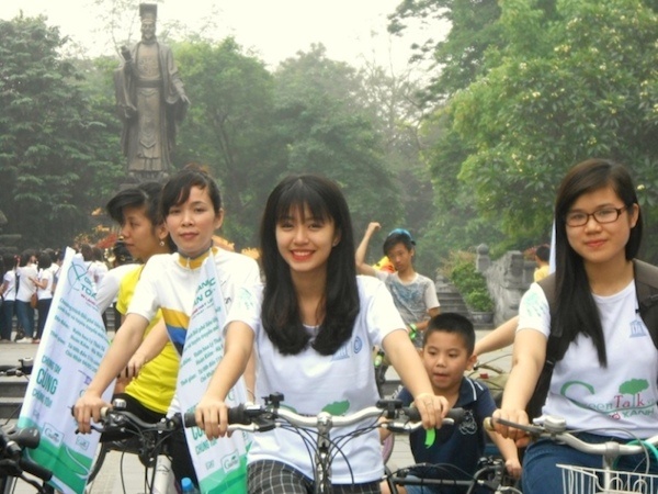 | Vào sáng nay (4/5), hot girl Mẫn Tiên cùng hơn 500 tình nguyện viên trẻ tuổi của dự án Môi trường Green Talk tại Hà Nội đã tham gia đạp xe vòng quanh thành phố. |