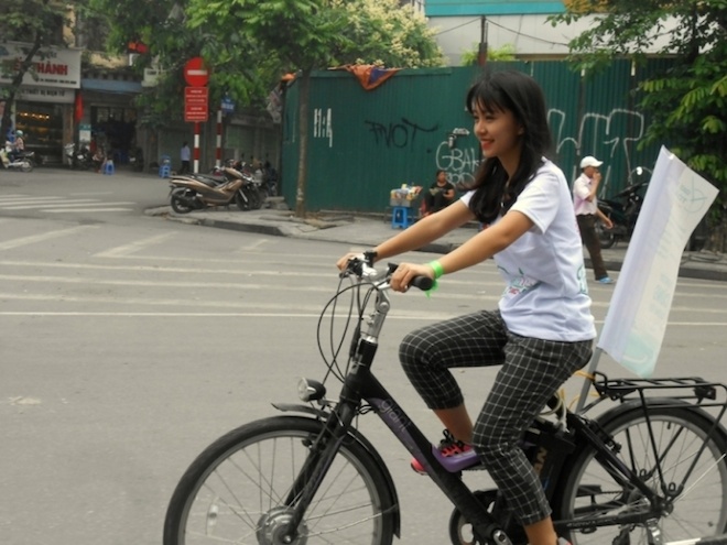 Hot girl Mẫn Tiên đạp xe cùng 500 bạn trẻ Hà thành