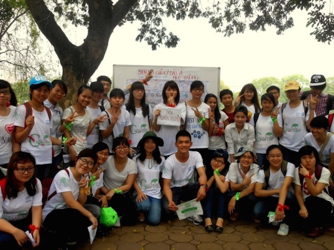 | Các tình nguyện viên trẻ tuổi còn tổ chức nhảy flashmob tập thể thu hút sự chú ý của người dân; thu gom rác, đạp xe vì môi trường, tuyên truyền tác hại của túi nilon, đổi túi nilon thành túi tự hủy sinh học xung quanh khu vực công viên Lý Thái Tổ. |