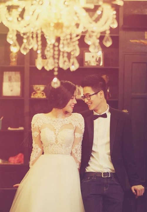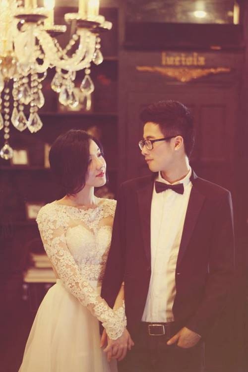 | Mie và JVevermind đẹp đôi trong trang phục cưới. |