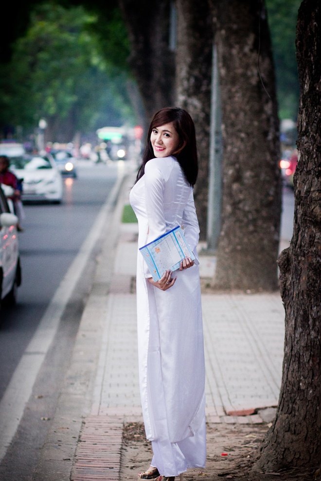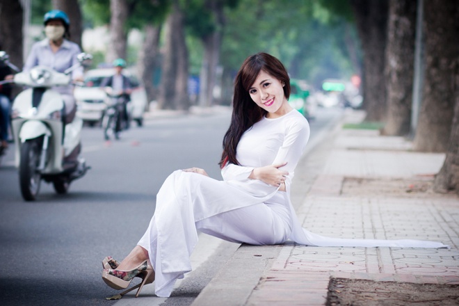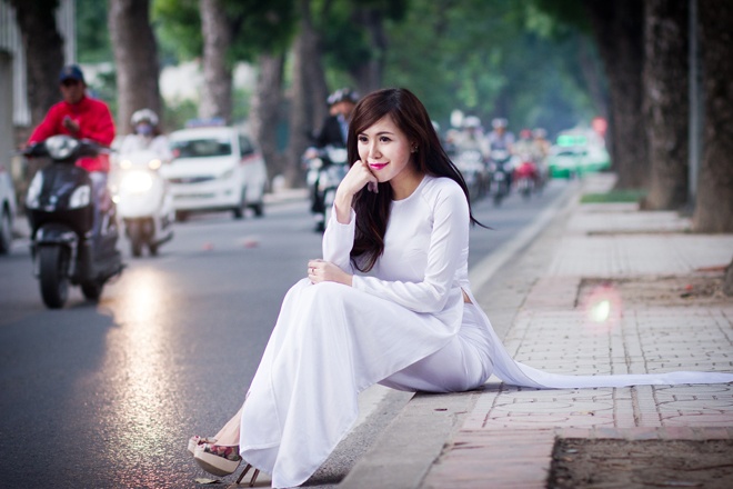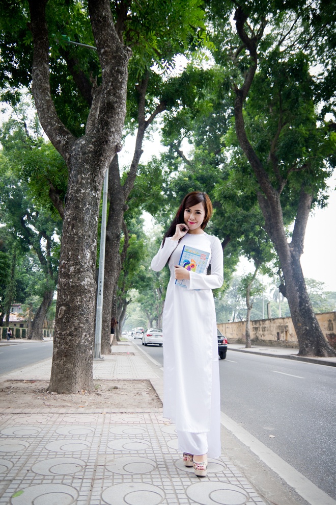 | Hot girl Mai Thỏ nhí nhảnh trong tà áo dài. |