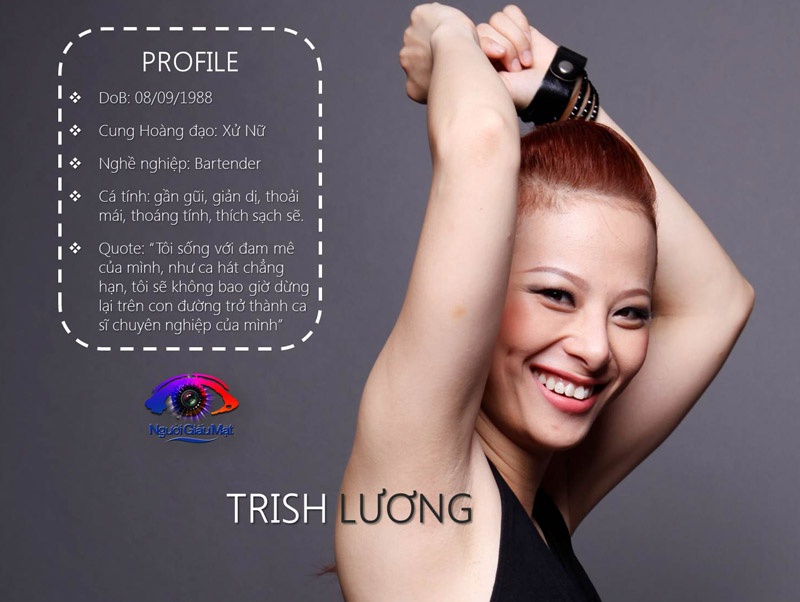 Với Trish Lương, đó là giới tính thật. Cô nàng bartender xinh đẹp vừa từ Mỹ về cho biết cũng mới chỉ khám phá ra xu hướng giới tính của mình cách đây vài năm. Tâm sự với Hà Thủy, Trish Lương chia sẻ, ngôi nhà chung của Người giấu mặt thực sự là nơi cô cảm thấy hạnh phúc nhất bởi vừa trải qua một thời gian dài đau khổ và tự kỷ khi bị bạn gái phản bội.