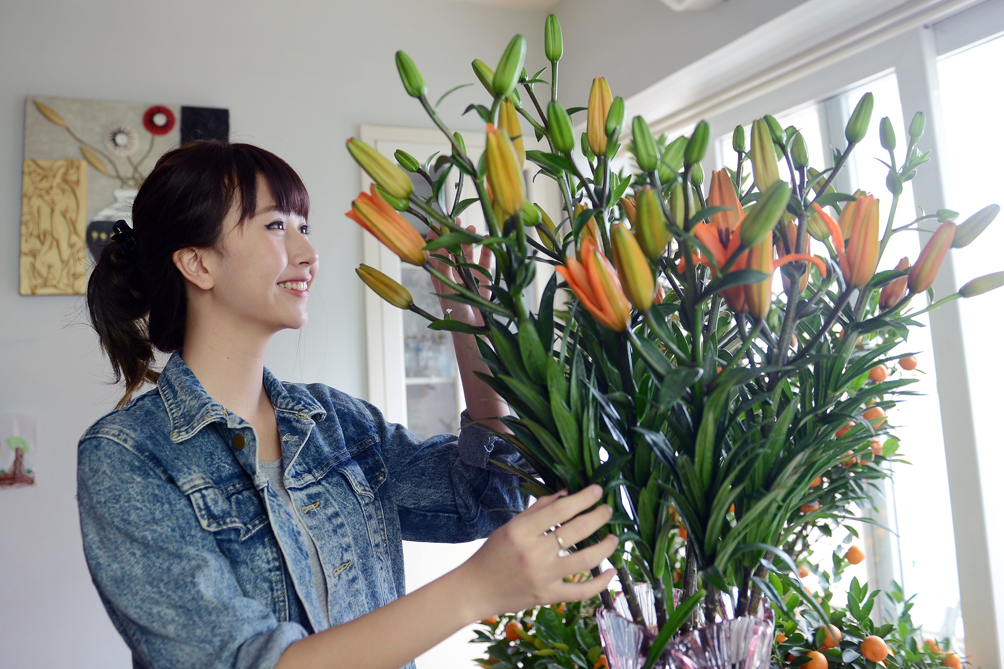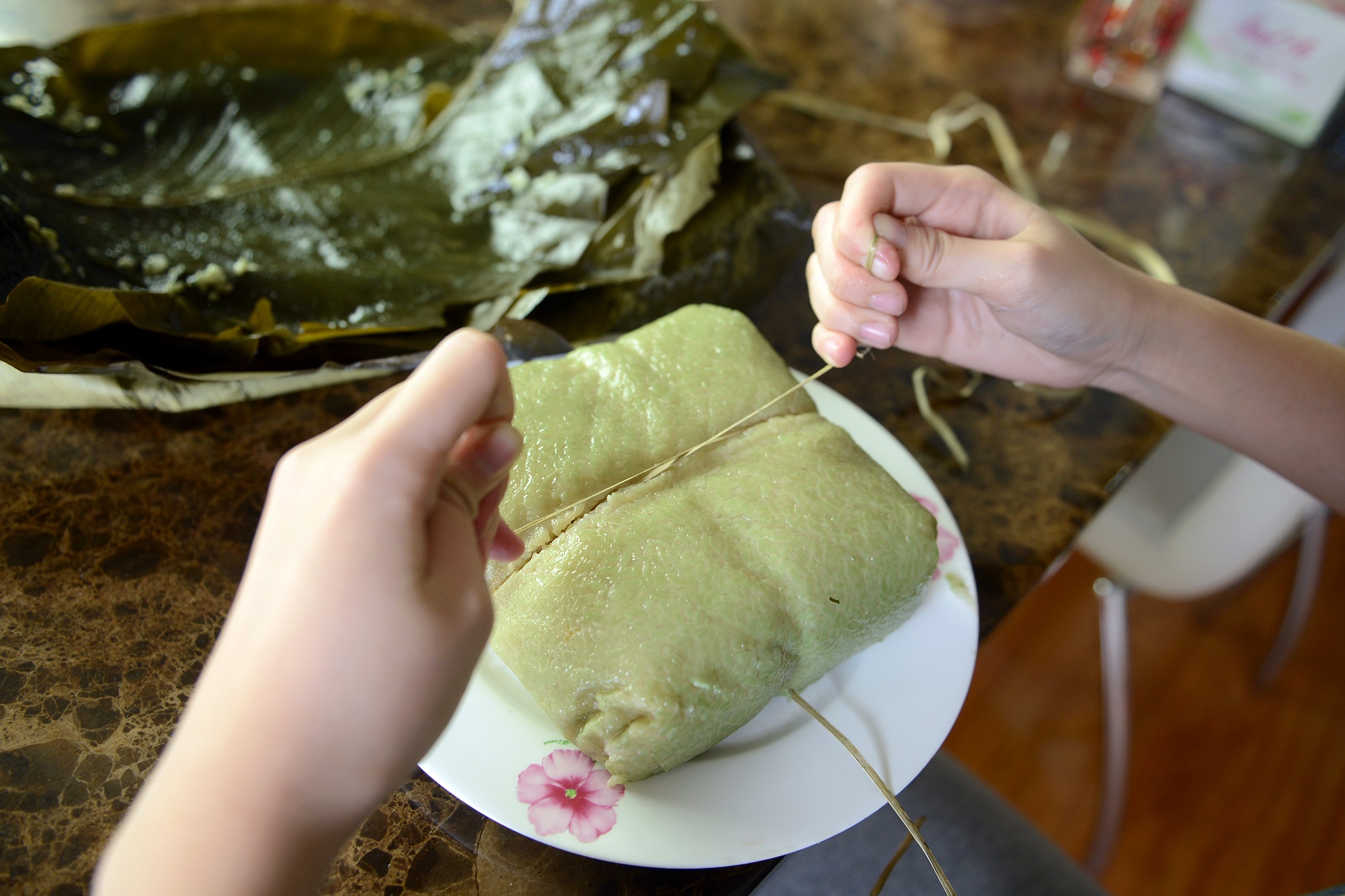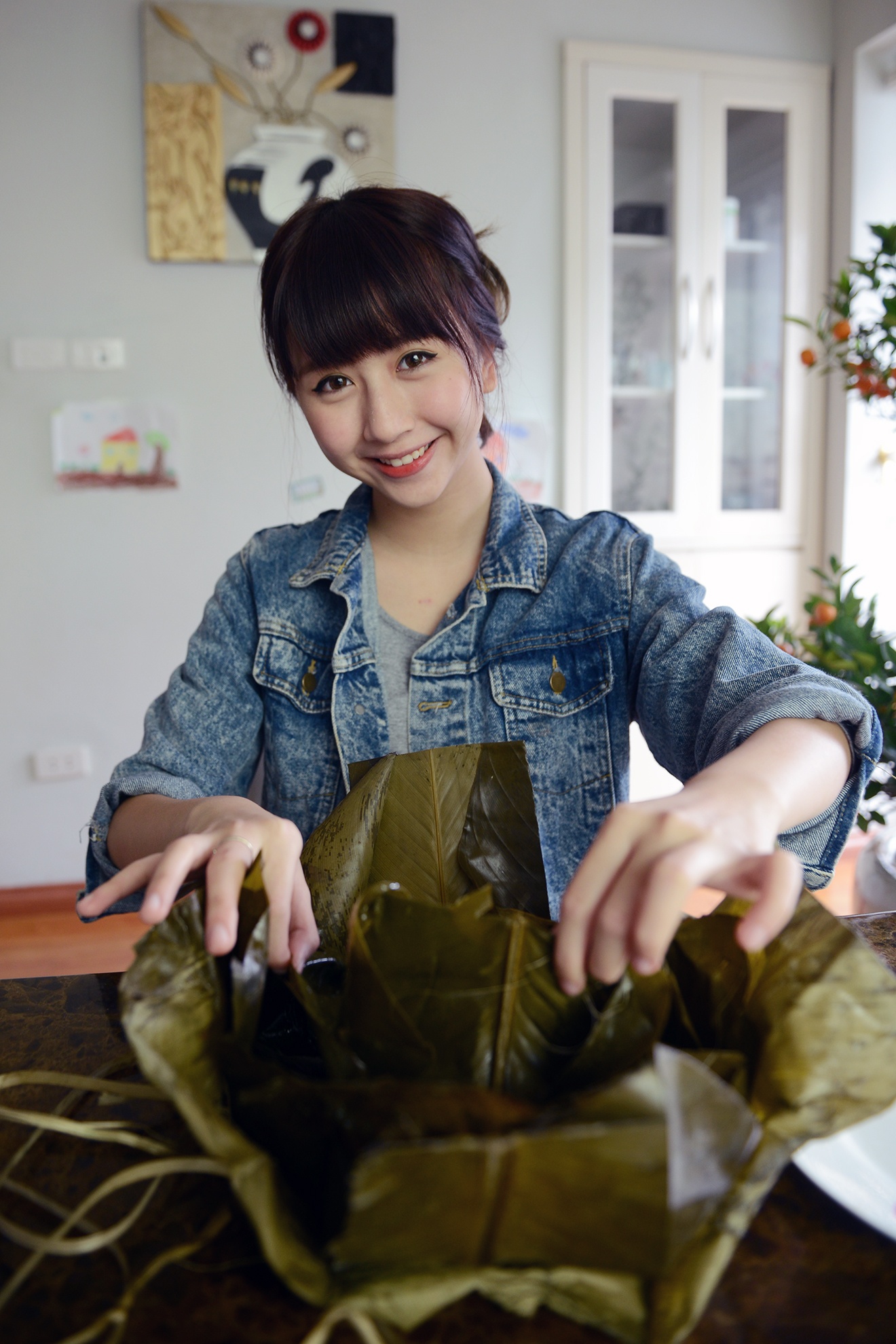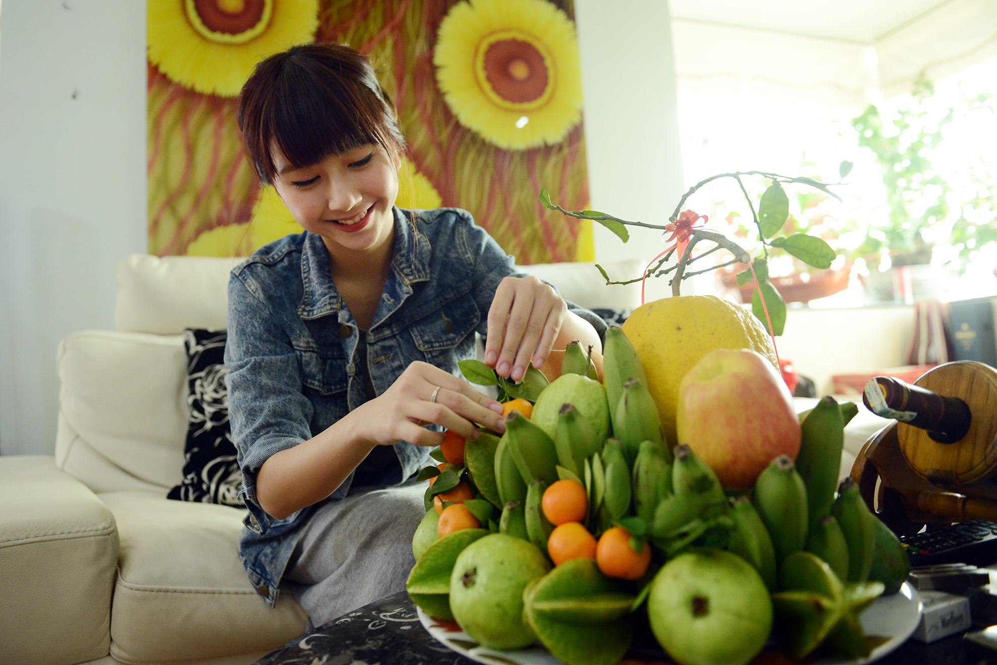 Quỳnh Anh đảm nhiệm mọi công việc nữ công gia chánh như bóc bánh chưng, cắm hoa, trang trí nhà cửa. |