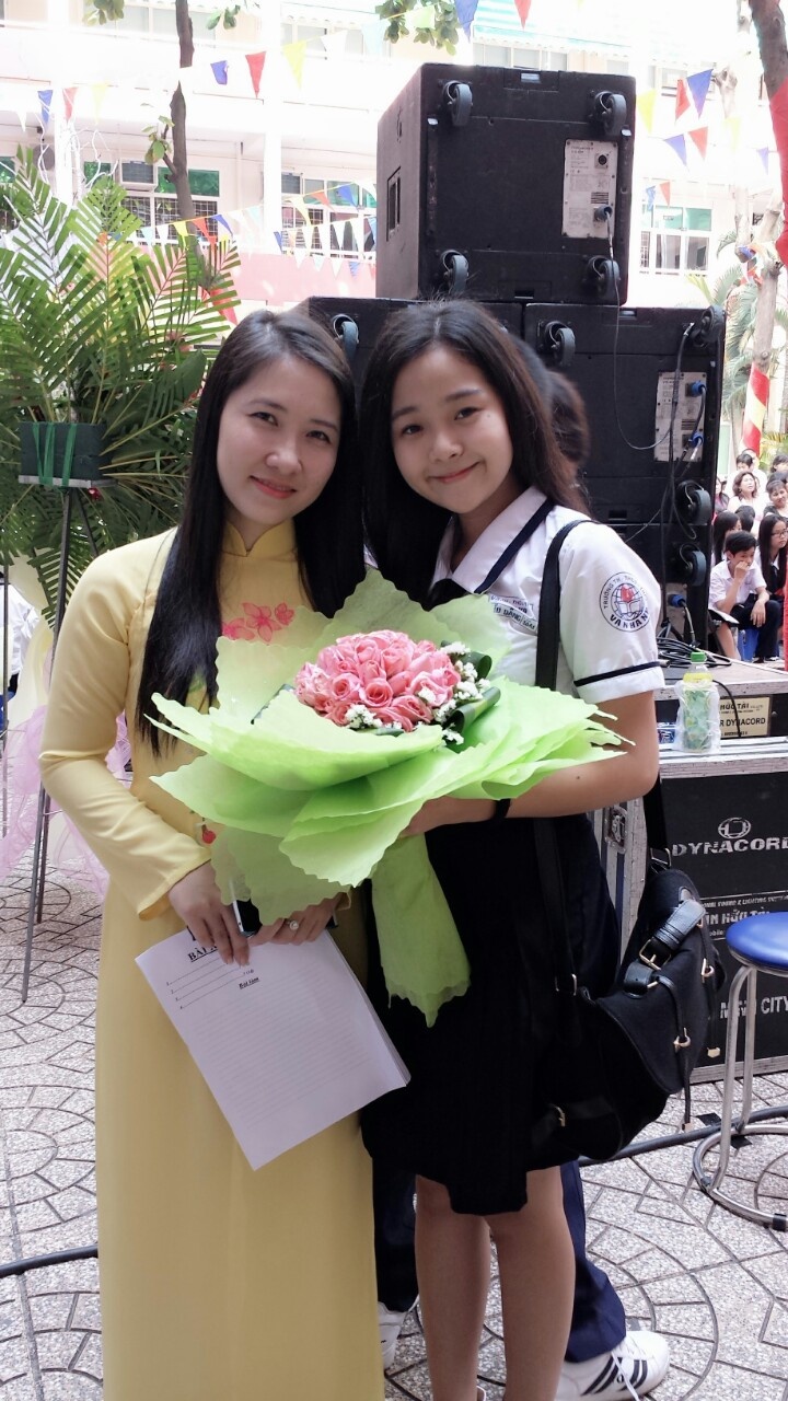 | Tam Triều Dâng và cô giáo chủ nhiệm. |