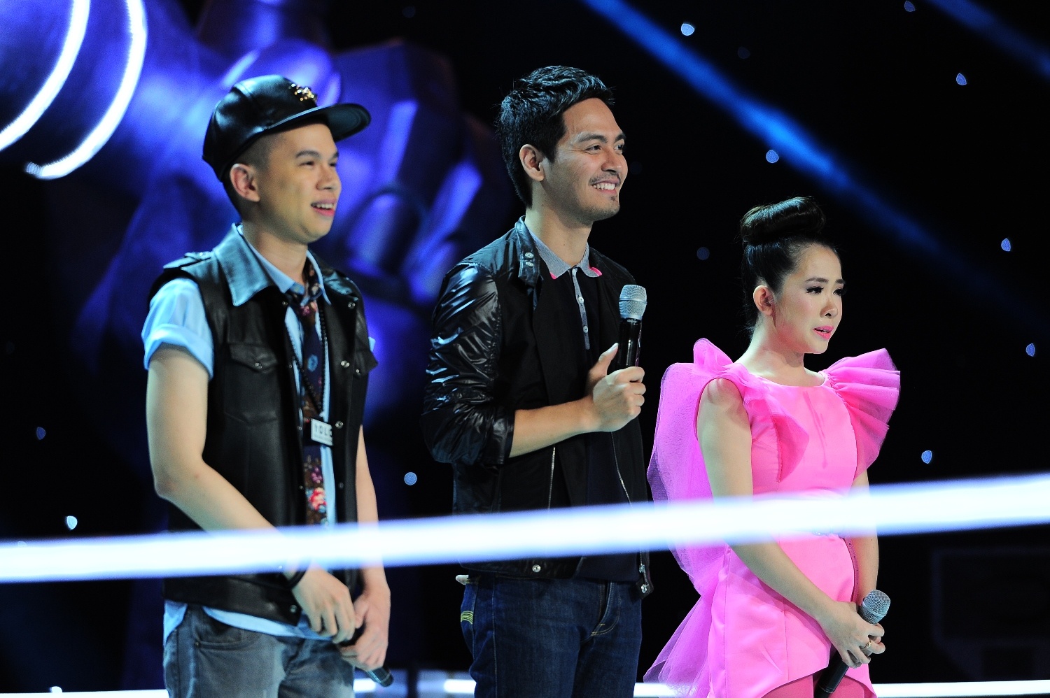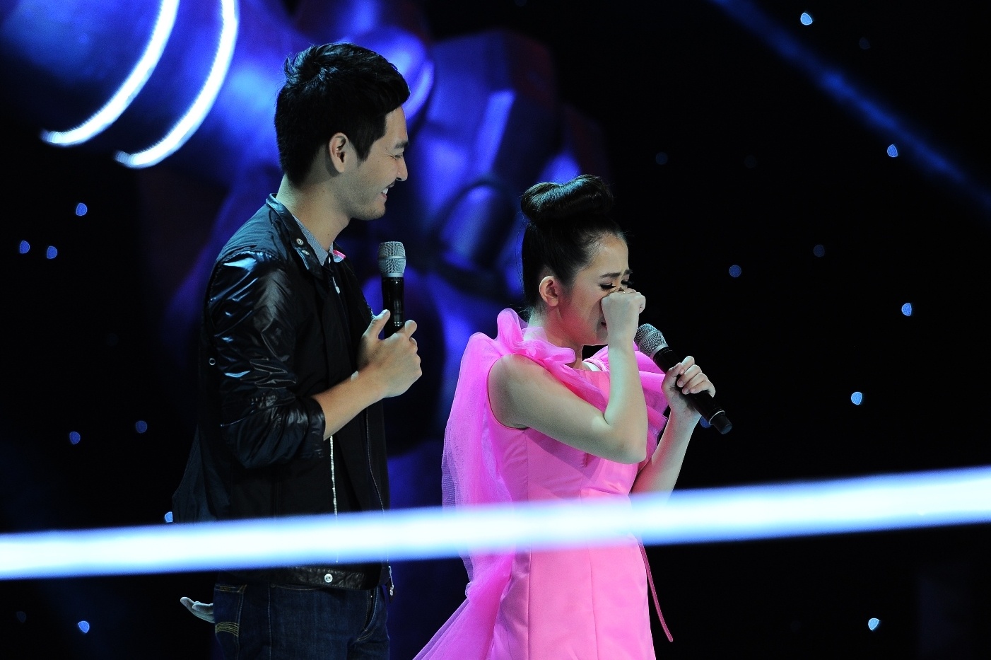 | Phần thi duy nhất của team Đàm Vĩnh Hưng là màn đấu giữa Hồng Gấm – cô gái từng đánh bại Diễm Hương ở vòng trước và “bản sao Bùi Anh Tuấn” - Minh Sang |