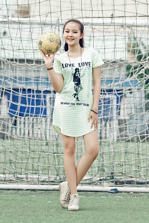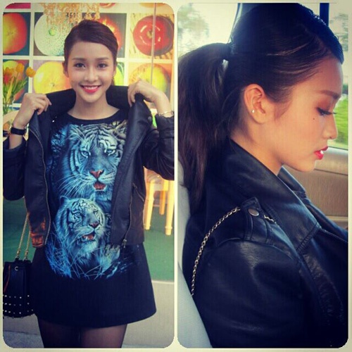 | Khả Ngân khỏe khoắn trong trang phục năng động. |