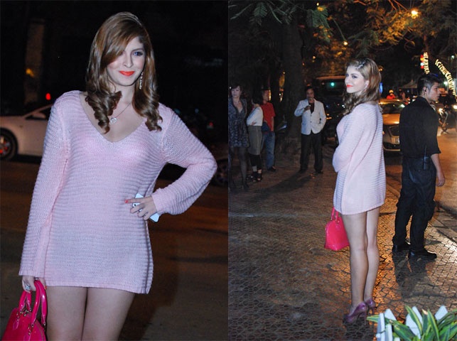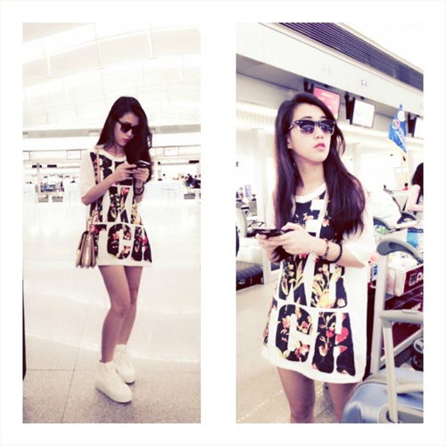 | Andrea cũng chuộng mốt "không quần", khoe trọn đôi chân. |