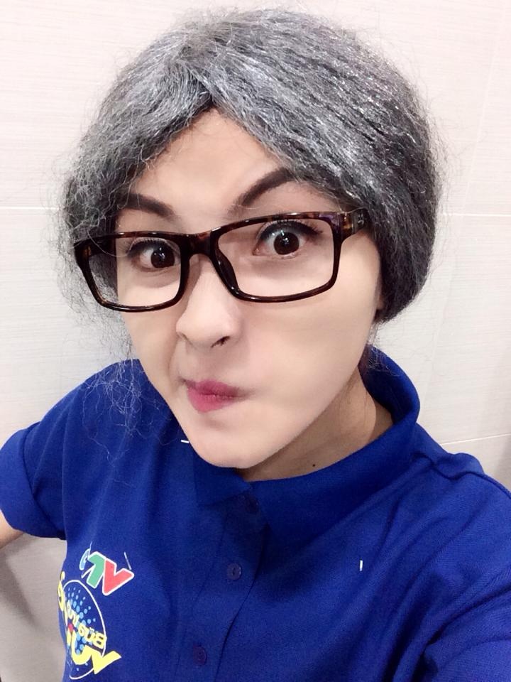 | MC Mù Tạt của Bữa trưa vui vẻ tạo hình với mái tóc lạ. Đây là nhân vật cô hóa thân trong chương trình ngày hôm nay. |