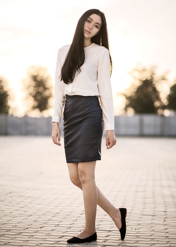 | Mái tóc đen dài óng mượt càng tôn lên vẻ đẹp Á Đông thanh thoát của cô. |