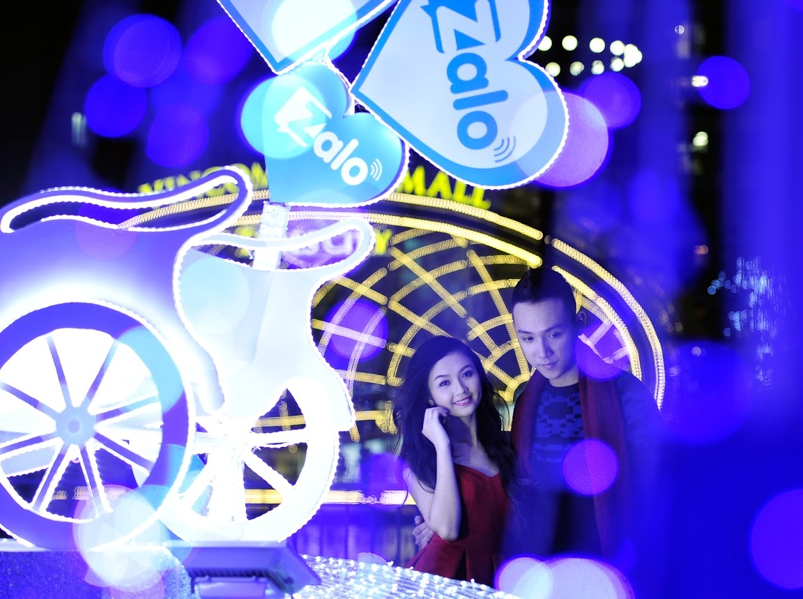| Cả hai mải mê ngắm khung cảnh được trang trí dành riêng cho các cặp đôi, gia đình đến chụp hình vào buổi tối. |