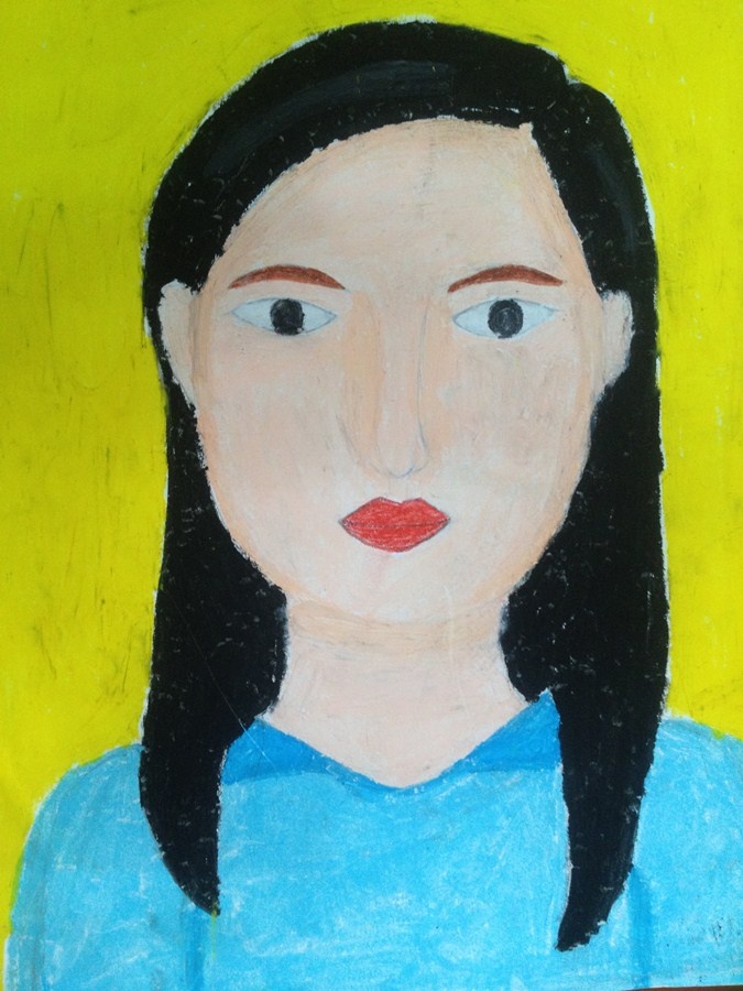 | Học sinh cấp 1 vẽ chân dung cô giáo. |