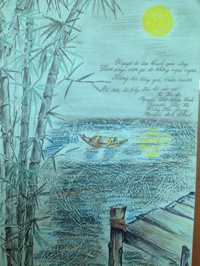 | Bức tranh và những vần thơ ý nghĩa với tên của cô giáo Nguyệt Anh. |