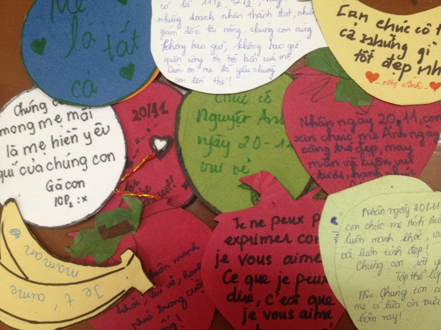 | Học sinh lớp Pháp 2 làm thơ tặng cô giáo. |