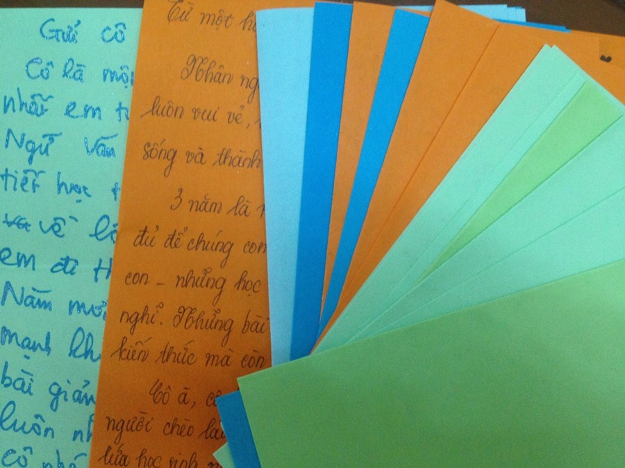 | Một lớp học đã sáng tạo ra những bức thư nhiều màu gửi tặng cô giáo. |
