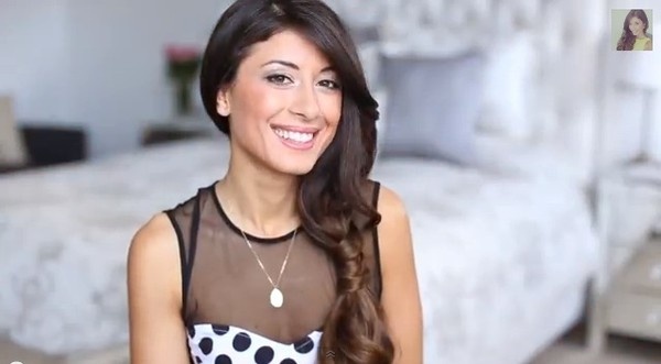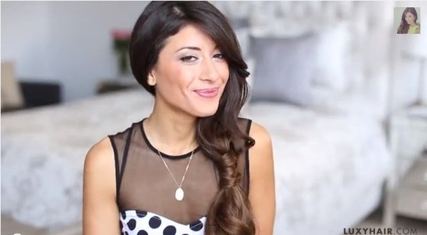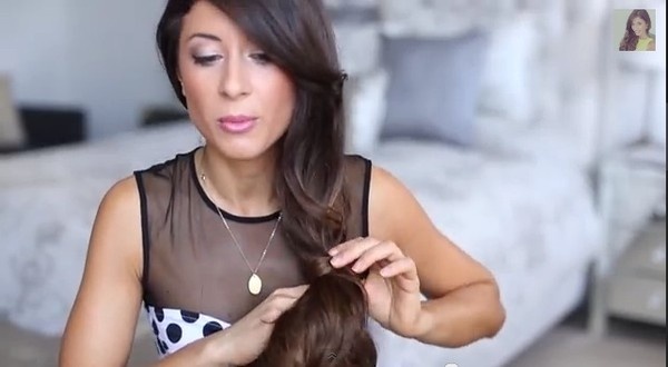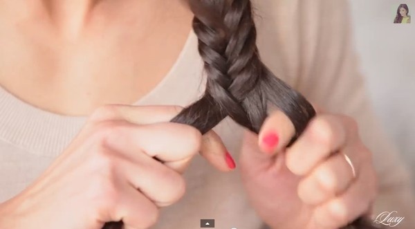 | Bước 2. Gạt tất cả tóc sang một bên sau đó tết tóc đuôi cá đơn giản và buộc lại bằng dây chun nhỏ. |