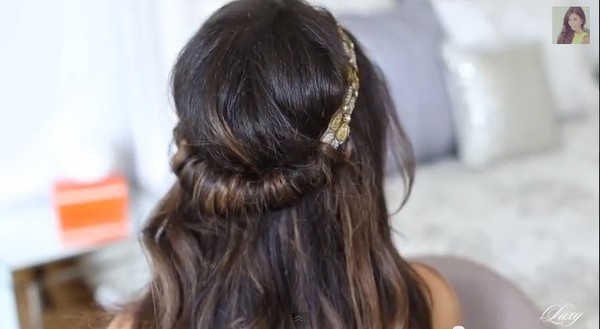 1. Tóc xoắn buộc nửa đeo bờm dịu dàng