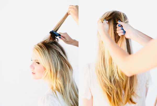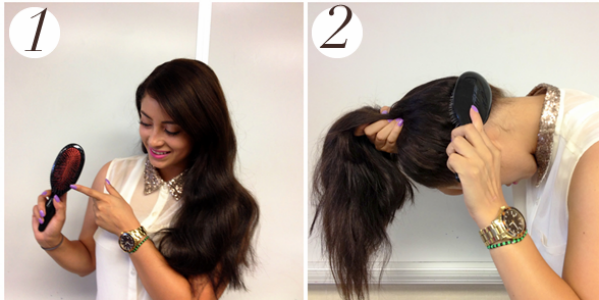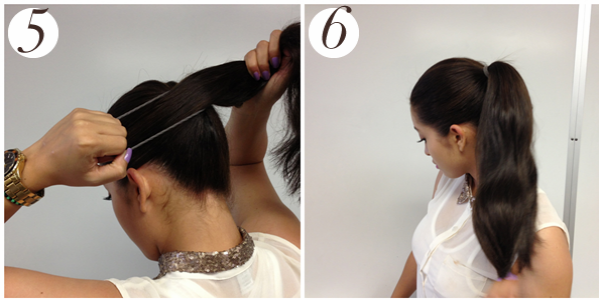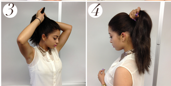 | Đầu tiên, hãy dùng lược để đánh phồng và buộc tóc đuôi ngựa cao lên. |