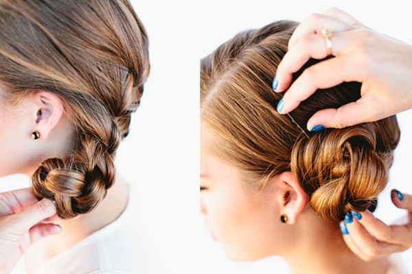 ... bạn gái quấn tròn phần đuôi tóc lại thành một búi rồi dùng gặp ghim cố định lại.