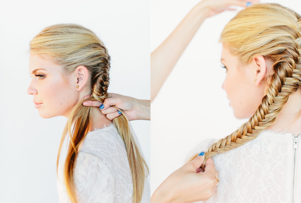 | 4. Tóc đuôi cá rối: Tóc tết đuôi cá đã và đang chinh phục trái tim của rất nhiều phái đẹp bởi sự ngọt ngào, nữ tính nhưng không kém phần thời thượng mà nó đem lại. Để tết được kiểu tóc này, bạn cần có một phái tóc dài ngang lưng. Đầu tiên, dùng lược chải nhẹ nhàng để tóc tơi ra, hết rối. Sau đó, bắt đầu tết ba hoặc tết năm từ đỉnh đầu xuống. |