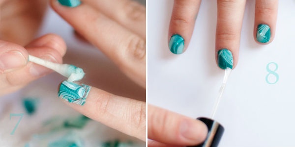 Chờ sơn khô hẳn và bạn sẽ có một bộ móng tay sơn loang rất xinh xắn, ấn tượng, tuyệt đối không "đụng hàng".