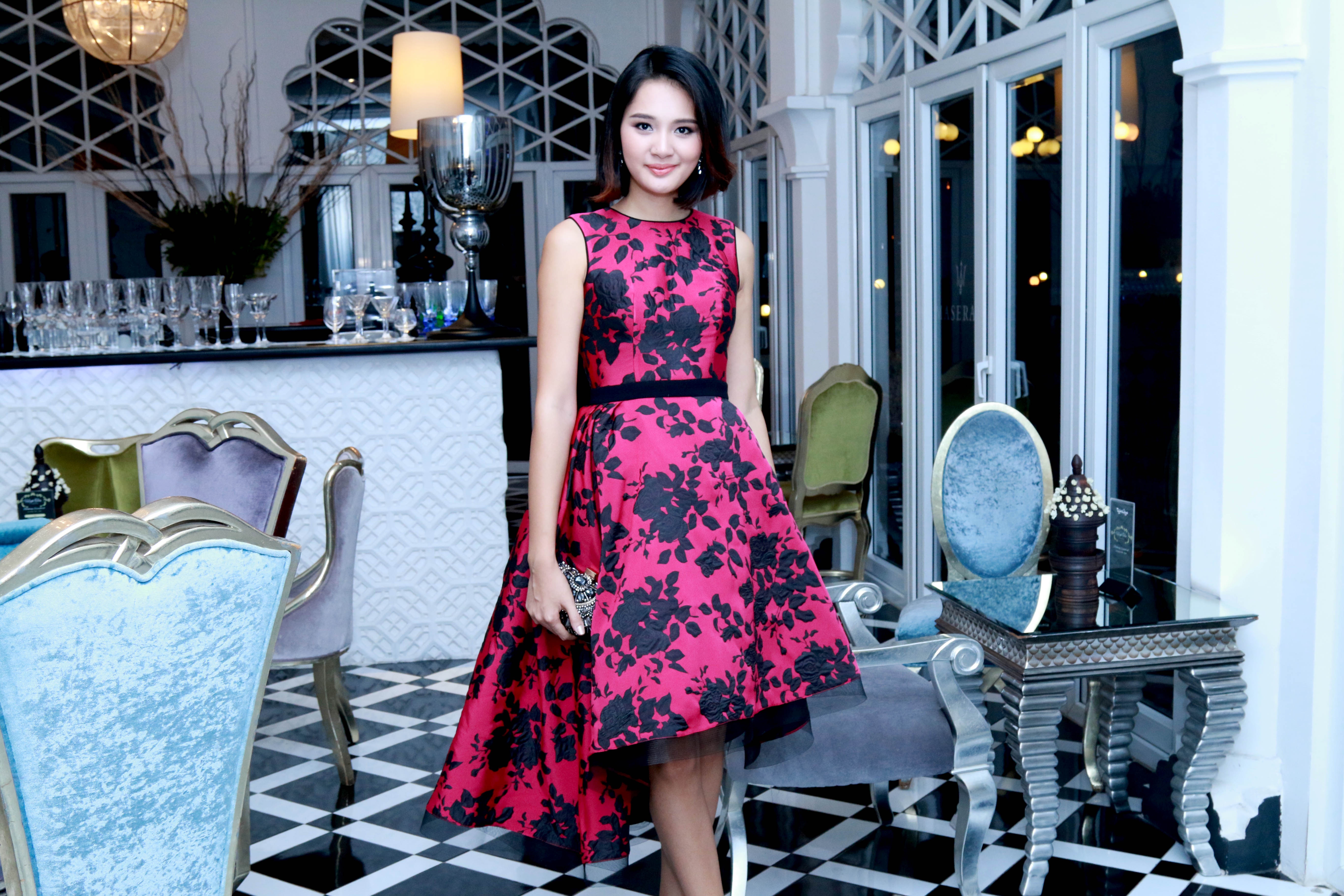 | Hoa hậu Hương Giang cũng không kém phần duyên dáng với bộ váy tông hồng in họa tiết hoa ngọt ngào. Bà mẹ một con đổi kiểu tóc bob năng động. |