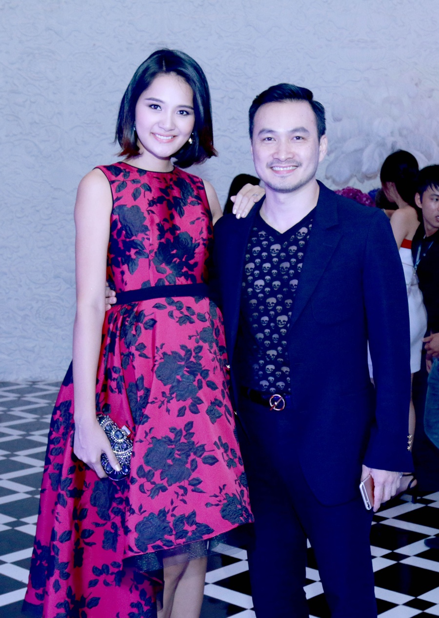 | Tại sự kiện, Hương Giang hội ngộ Chi Bảo. Anh mặc lịch thiệp với vest đen. |