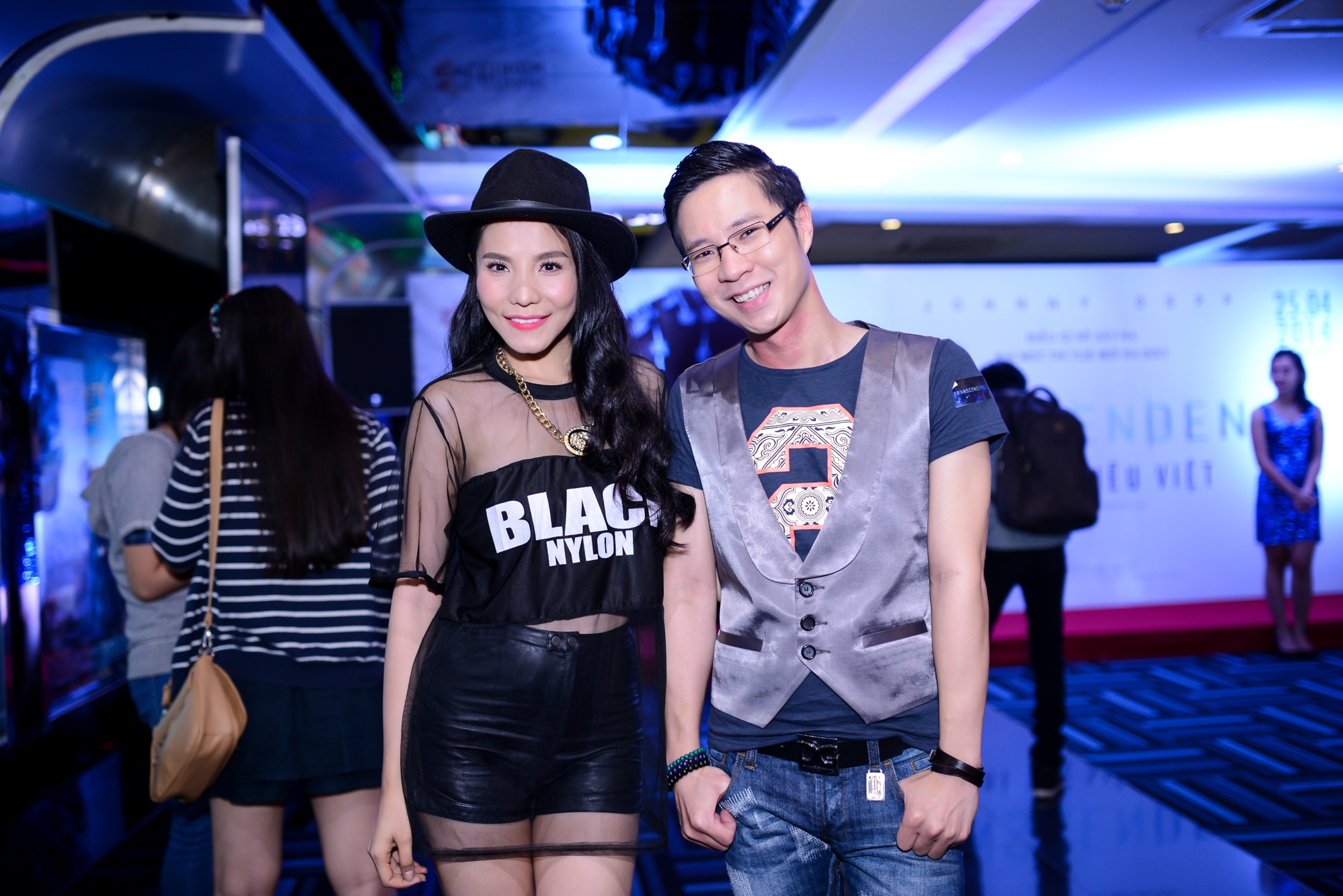 Nữ ca sĩ hội ngộ nhiều bạn bè trong buổi công chiếu bộ phim "Transcendence" tổ chức tại TP.HCM chiều ngày 23/4.