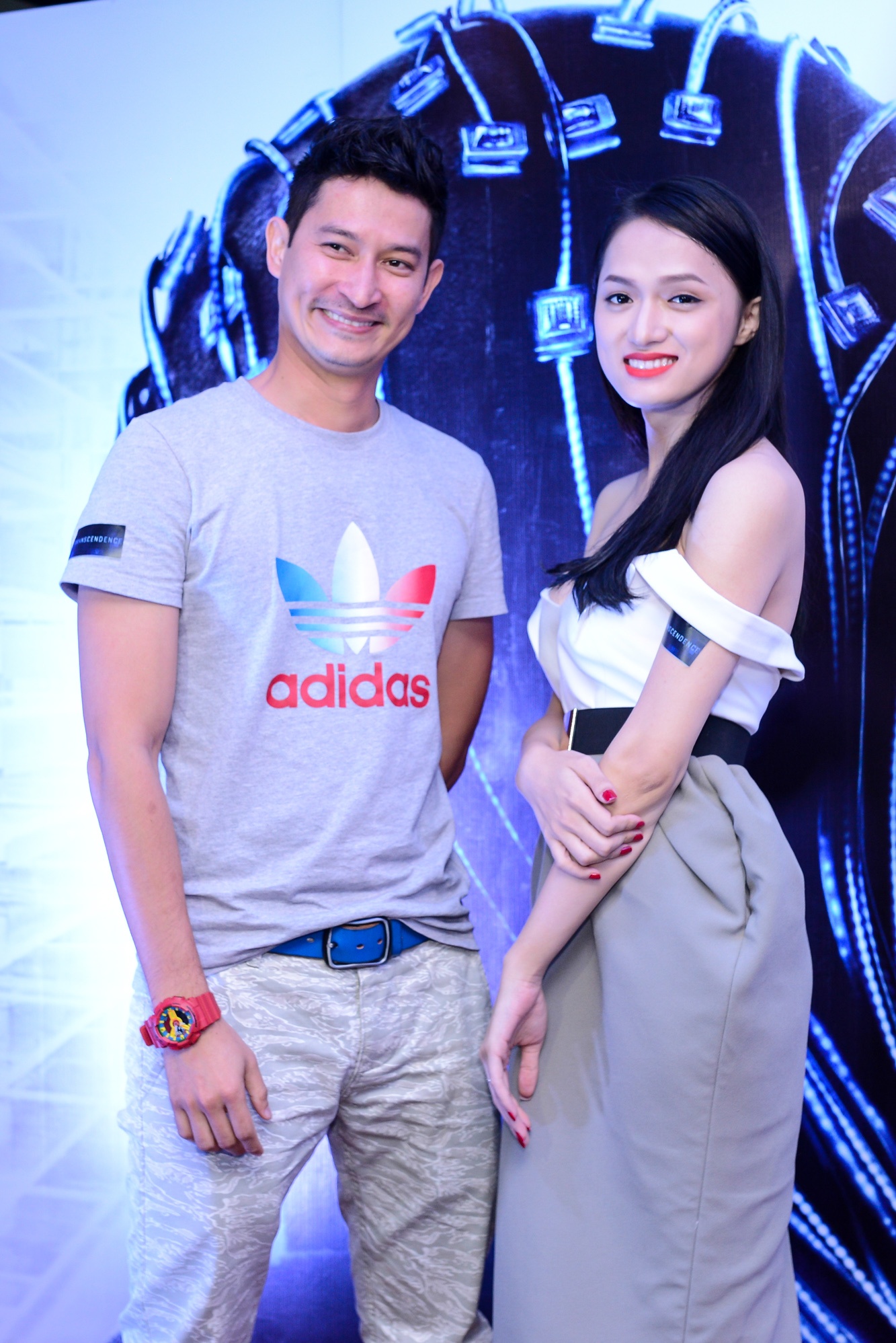 Hướng tới phong cách sexy, gợi cảm, Hương Giang luôn thu hút sự chú ý của khán giả trong những lần xuất hiện. Cô hội ngộ MC - diễn viên Huy Khánh khi tham gia buổi công chiếu bộ phim Trí tuệ siêu việt tổ chức ở TP.HCM.