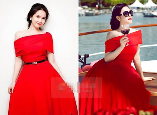 | Ngọc Quyên diện một thiết kế hao hao với chiếc váy '''đụng hàng'' của Lý Nhã Kỳ và Ngọc Trinh. |