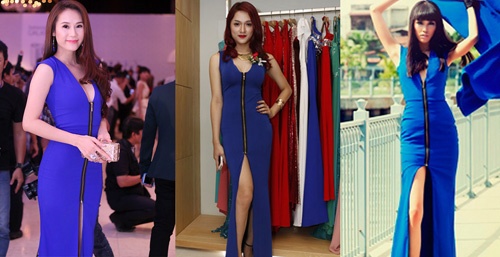 Tiếp đó, khi tham dự Đêm hội chân dài 7, cô nổi bật trong chiếc đầm dạ hội màu tím than rất sang trọng, thế nhưng thiết kế đã được Thanh Hằng và Hoàng Yến mặc trước đó không lâu.