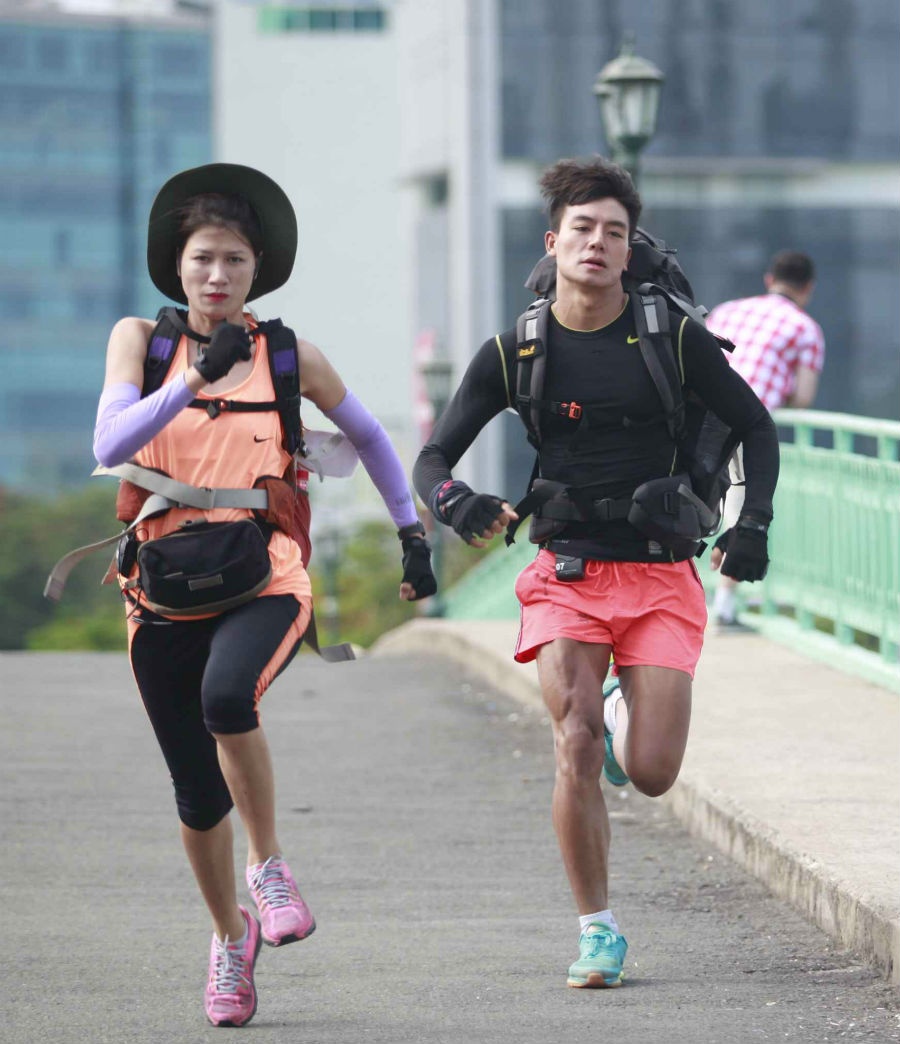 | Hương Giang Idol và Criss Lai trong thử thách Xếp ván vượt sông. |
