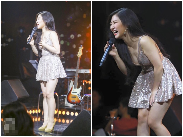 Dù nhiều lần bị nhắc nhở vì trang phục kém duyên, quán quân The Voice mùa đầu vẫn duy trì sở thích thời trang thiếu vải khi bước lên sân khấu.