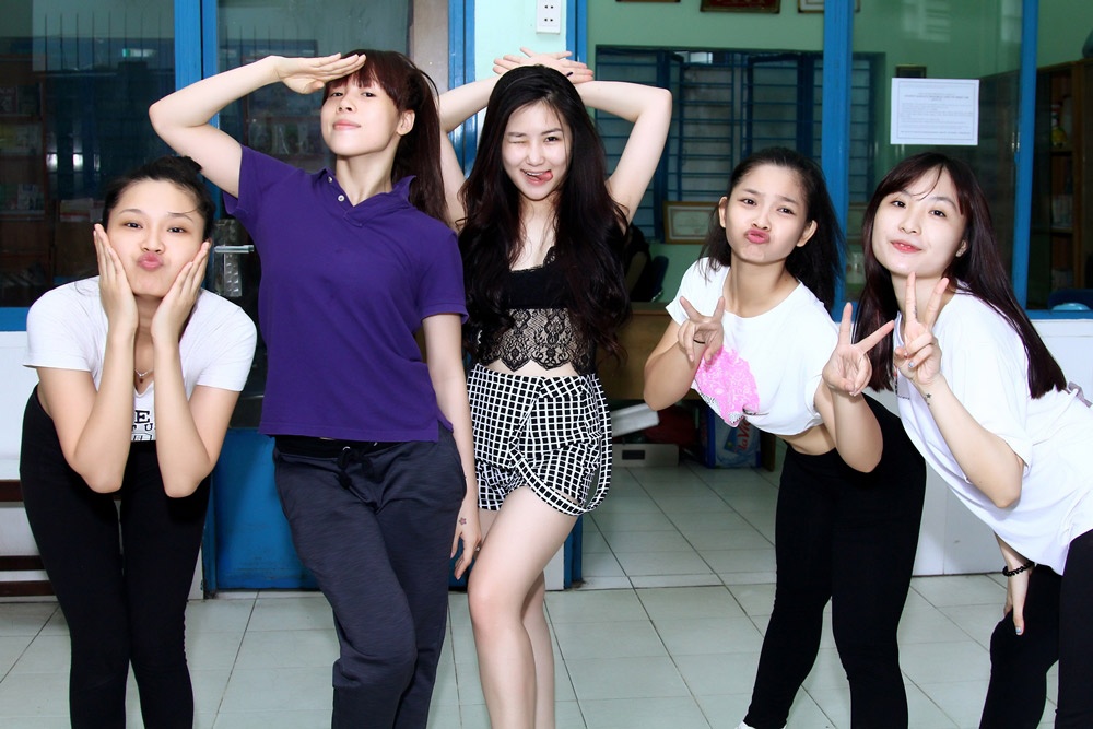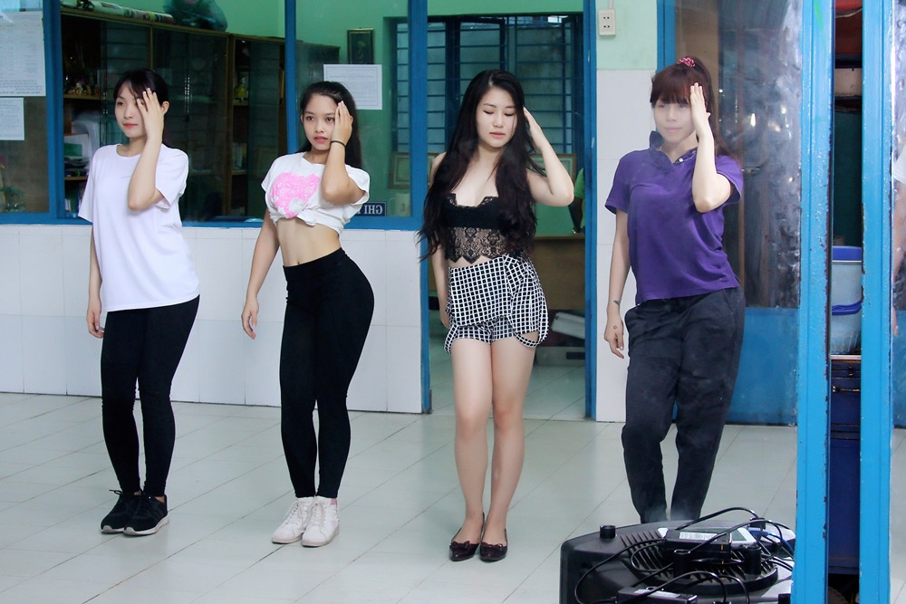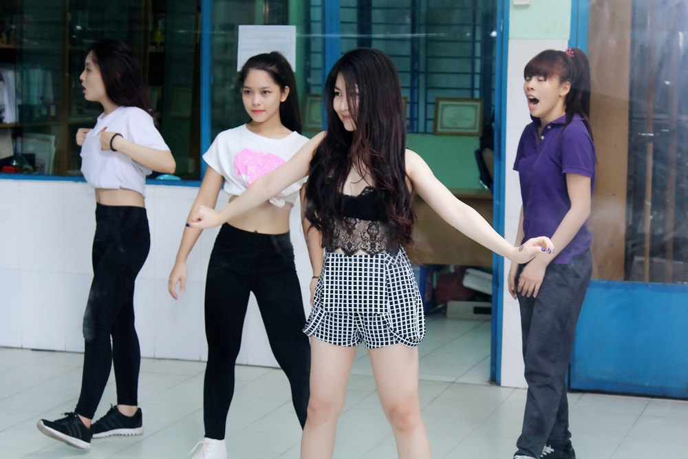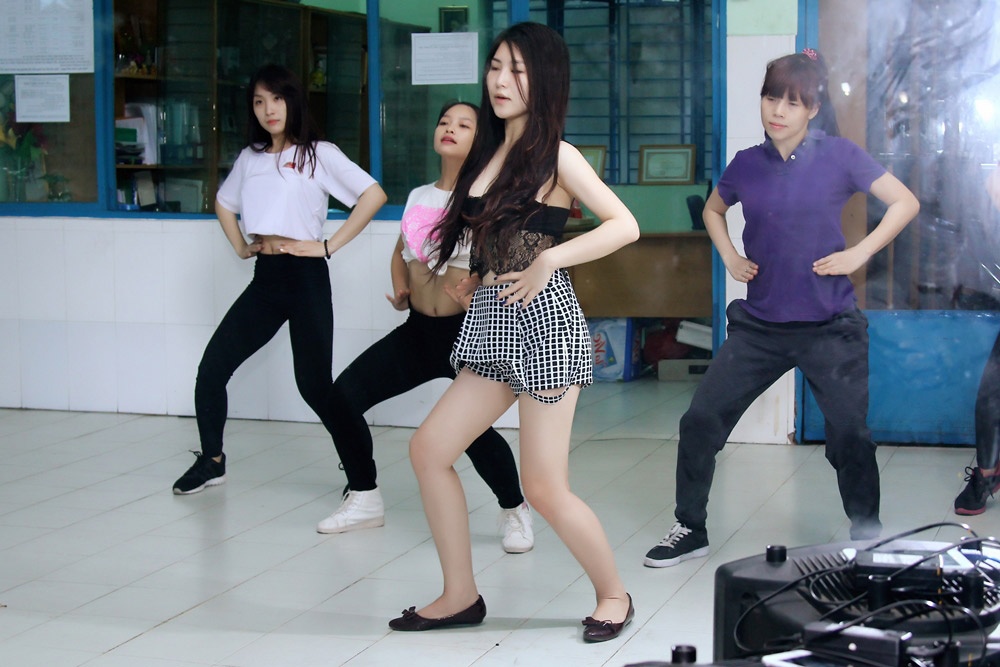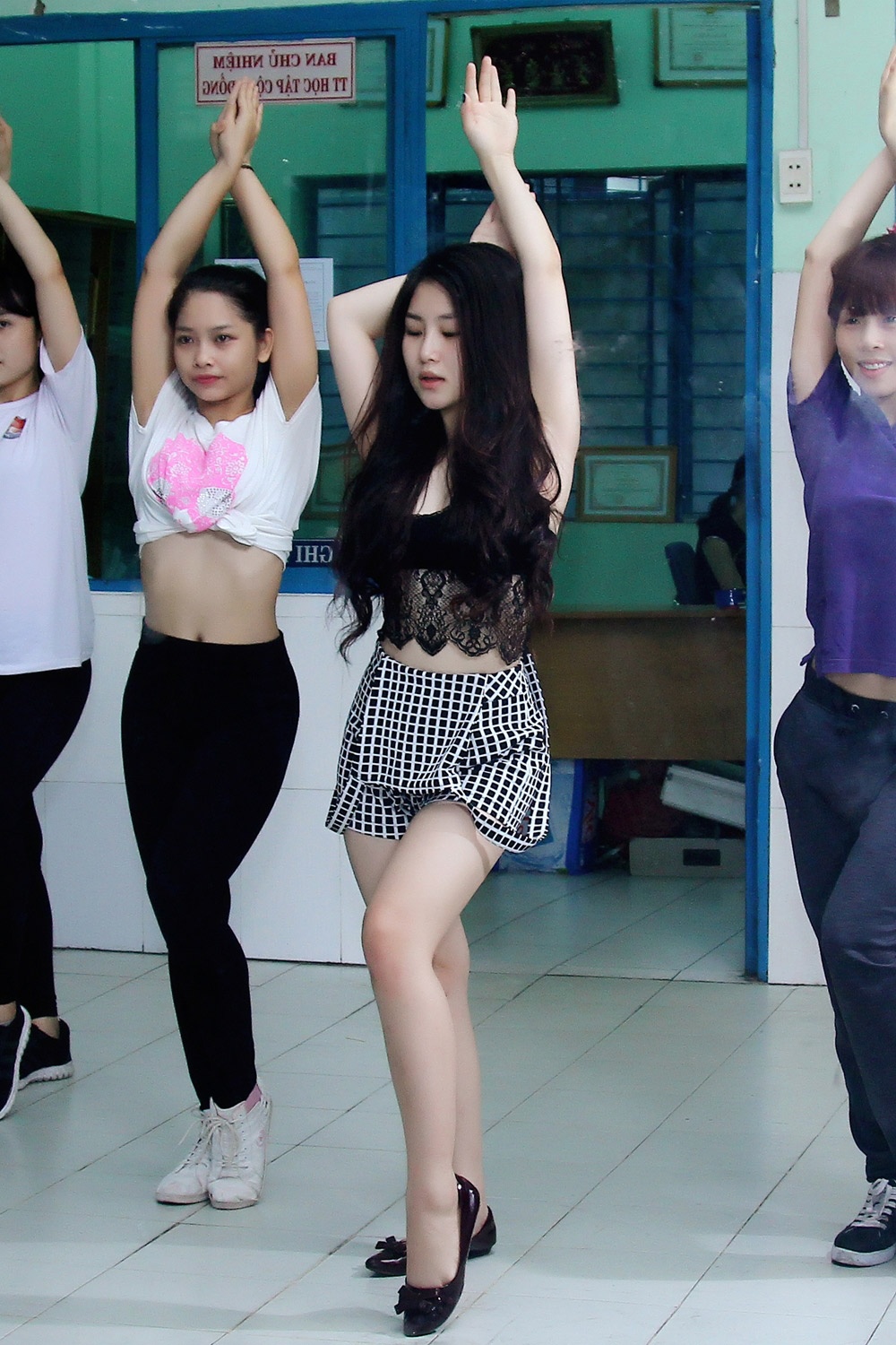 | Tại buổi tập, Hương Tràm để mặt mộc và vui vẻ học hỏi những động tác từ vũ đoàn. Cô hy vọng với sự cố gắng, lao động nghệ thuật nghiêm túc của mình sẽ được mọi khán giả ủng hộ. |