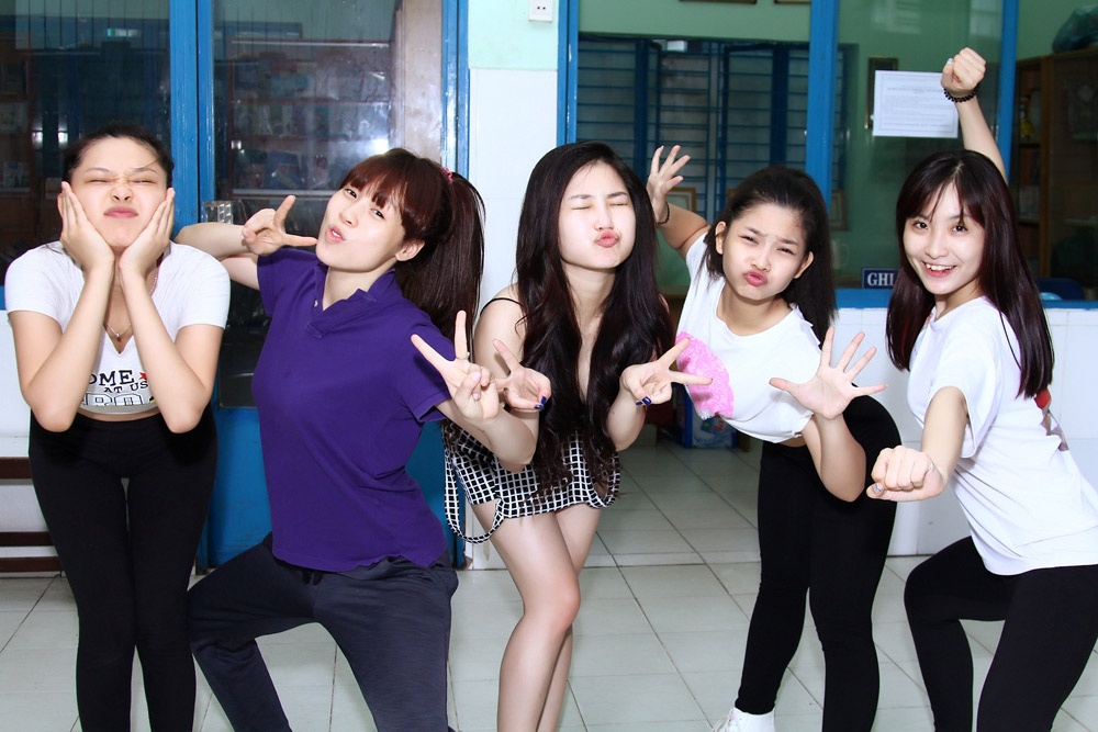 | Hương Tràm chụp hình cùng vũ đoàn của mình sau buổi tập. |