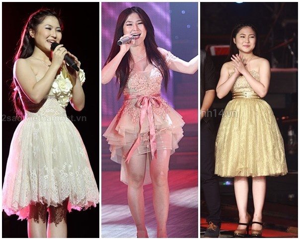 Những bộ cánh ren, bồng xòe khiến ngoại hình nữ ca sĩ như bị tăng cân.