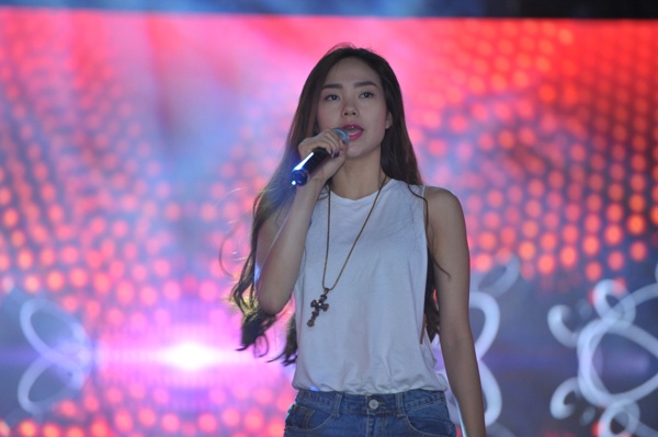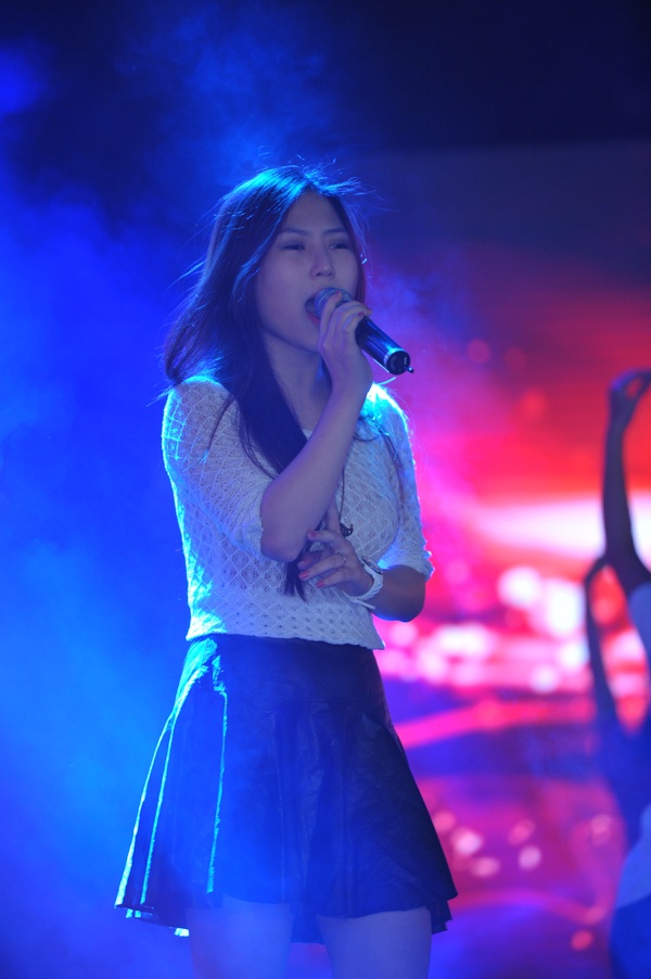 | Quán quân The Voice ăn mặc giản dị khi đi tập. Gương mặt của cô còn đọng lại sự mệt mỏi sau những ồn ào với Thu Minh - người thầy của mình ở cuộc thi ca hát. Xuất hiện tại buổi tổng duyệt, khi được hỏi về những chuyện vừa qua, cô xin phép không trả lời bất kỳ điều gì. |