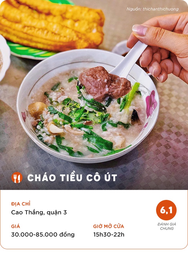 Cùng với mì hoành thánh, phá lấu, dimsum... hương vị bình dị của món cháo kiểu Hoa cũng rất được lòng thực khách TP.HCM. Bạn có thể ghé đến thưởng thức món ăn tại các địa chỉ sau.