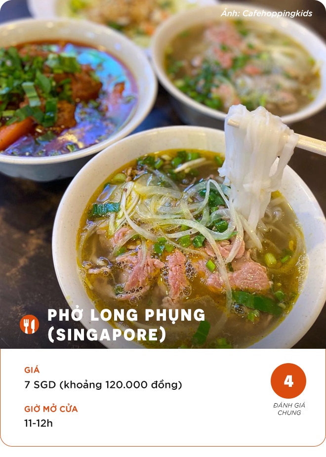 Long Phụng là một trong những nhà hàng phục vụ món Việt nổi tiếng ở Singapore. Tới đây, thực khách sẽ được thưởng thức các đặc sản như bún thang, bún riêu, gỏi cuốn và phở.