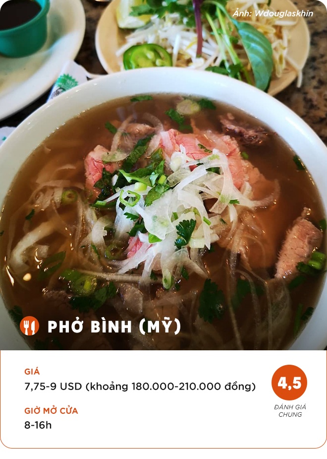 McKinzie B: "Đây là địa điểm ăn phở yêu thích của tôi ở Houston. Giá cả bình dân. Bữa ăn của tôi và chồng thường mất 13-14 USD. Điểm trừ duy nhất là chỗ ngồi hạn chế".