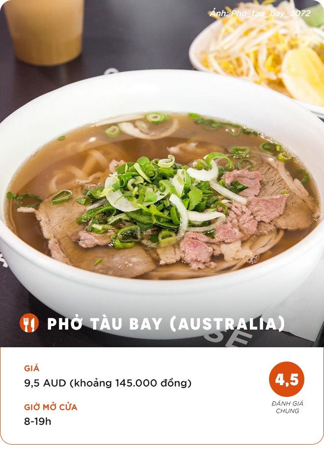 ItsStanley: "Đây là một trong những hàng phở nhộn nhịp nhất Cabramatta. Nhân viên phục vụ thức ăn nhanh chóng. Phở kết hợp thịt bò rất ngon. Tuy nhiên, sau khi được người phục vụ giới thiệu phở gà, cá và nếm thử, tôi nhận ra đây là món phở ngon nhất từ trước đến nay. Ngoài ra, nhà hàng còn có dịch vụ chuyển tiền điện tử, một điều hiếm thấy trong các nhà hàng ở Cabramatta".
