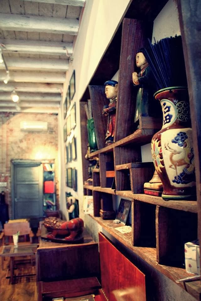 Không chỉ mùi hương đen, mà mỗi chi tiết, mỗi vật dụng trong quán cũng đưa người ta về với Hà Nội những năm lâu lắm. Đó là chiếc ghế, chiếc bàn từ thập niên 60 -70, là chiếc máy đánh chữ, chiếc radio, chiếc bàn ủi than với biểu tượng chú gà trống trên nắp… cổ lỗ sỉ.