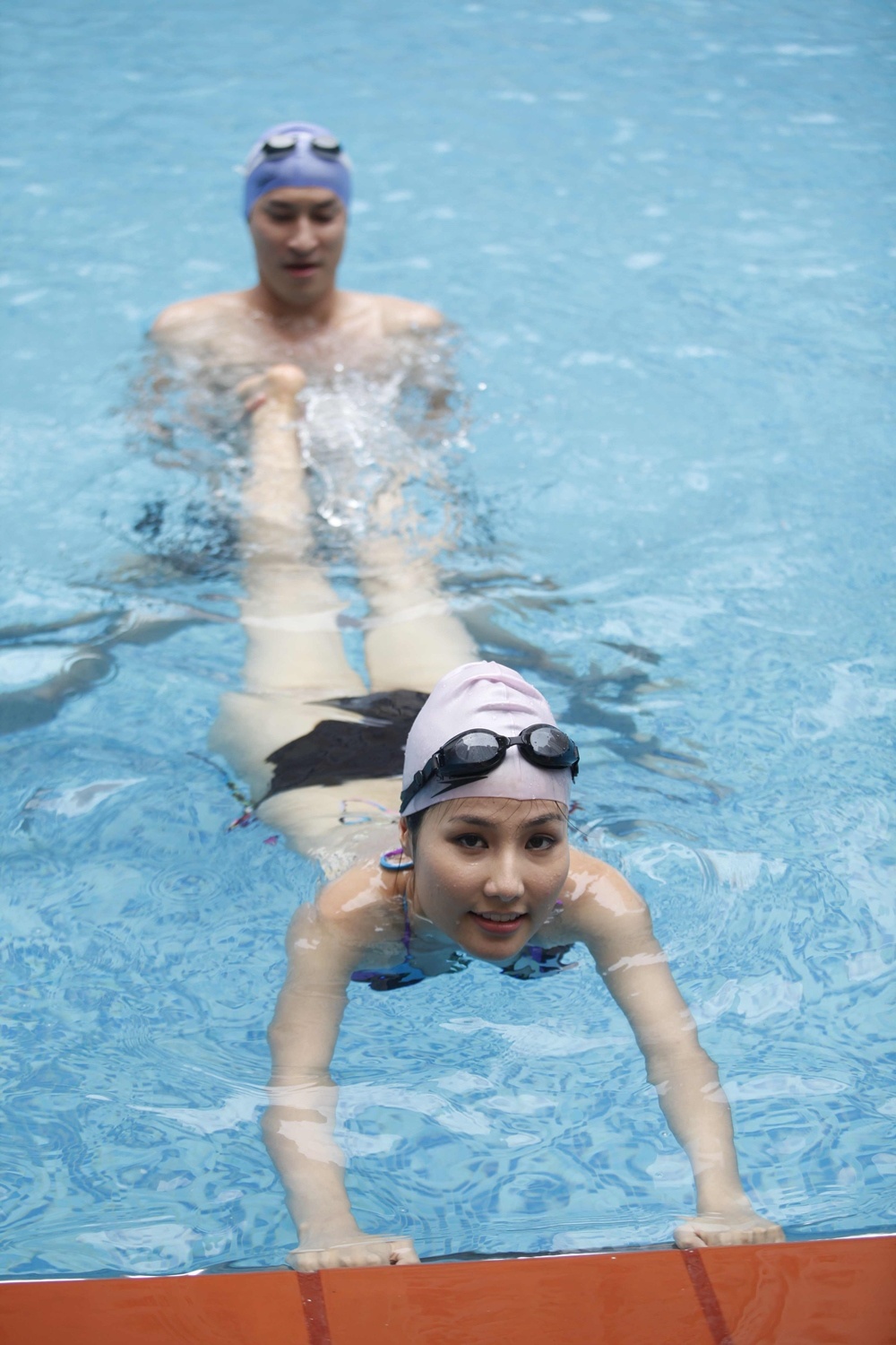 Cảnh quay này được thực hiện tại một hồ bơi sang trọng, và cả hai diễn viên vô cùng hào hứng và tự tin với khả năng bơi lội của mình. Hình ảnh Diễm My la oai oái khi bị Huy Khánh "cưỡng hôn".