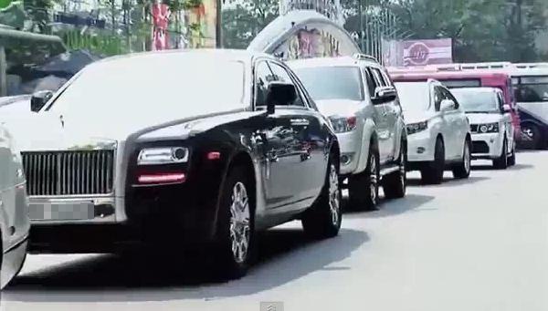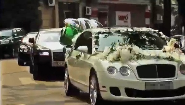 | Dàn xe sang trong lễ cưới của cô, dẫn đầu là siêu xe Bentley Continental Flying Spur. |