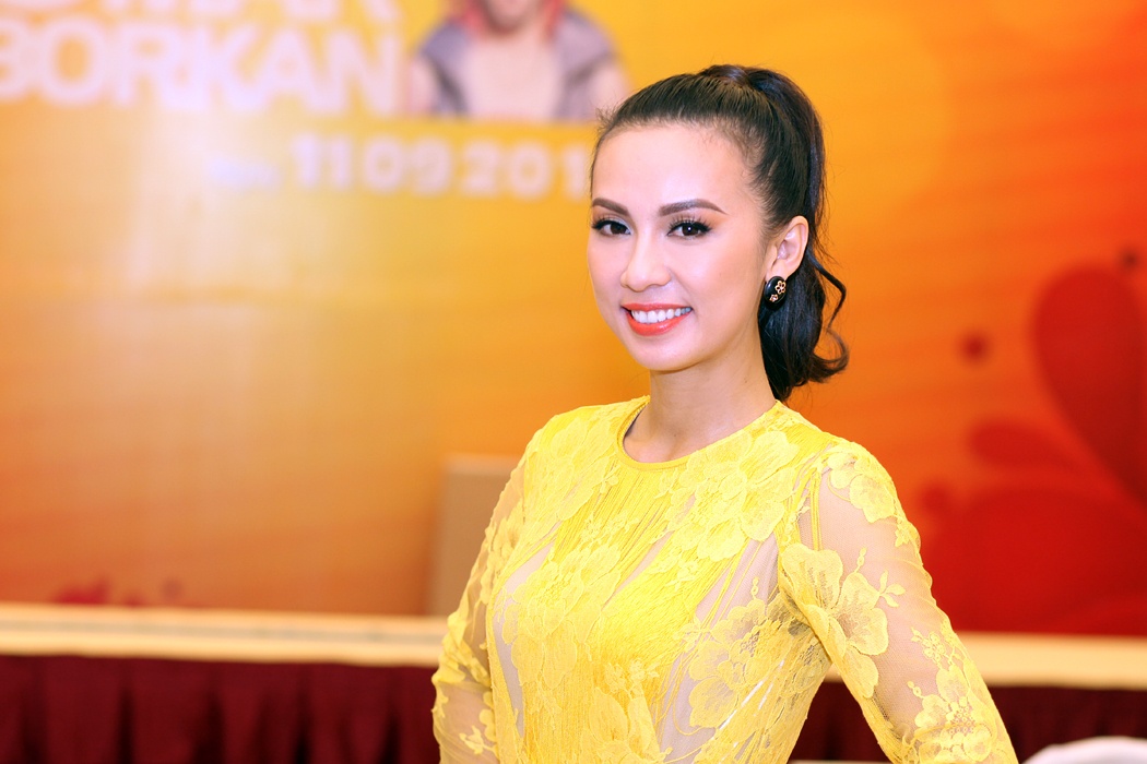 | Huyền Ny diện đầm vàng sang trọng, nổi bật trong sự kiện đấu giá. |