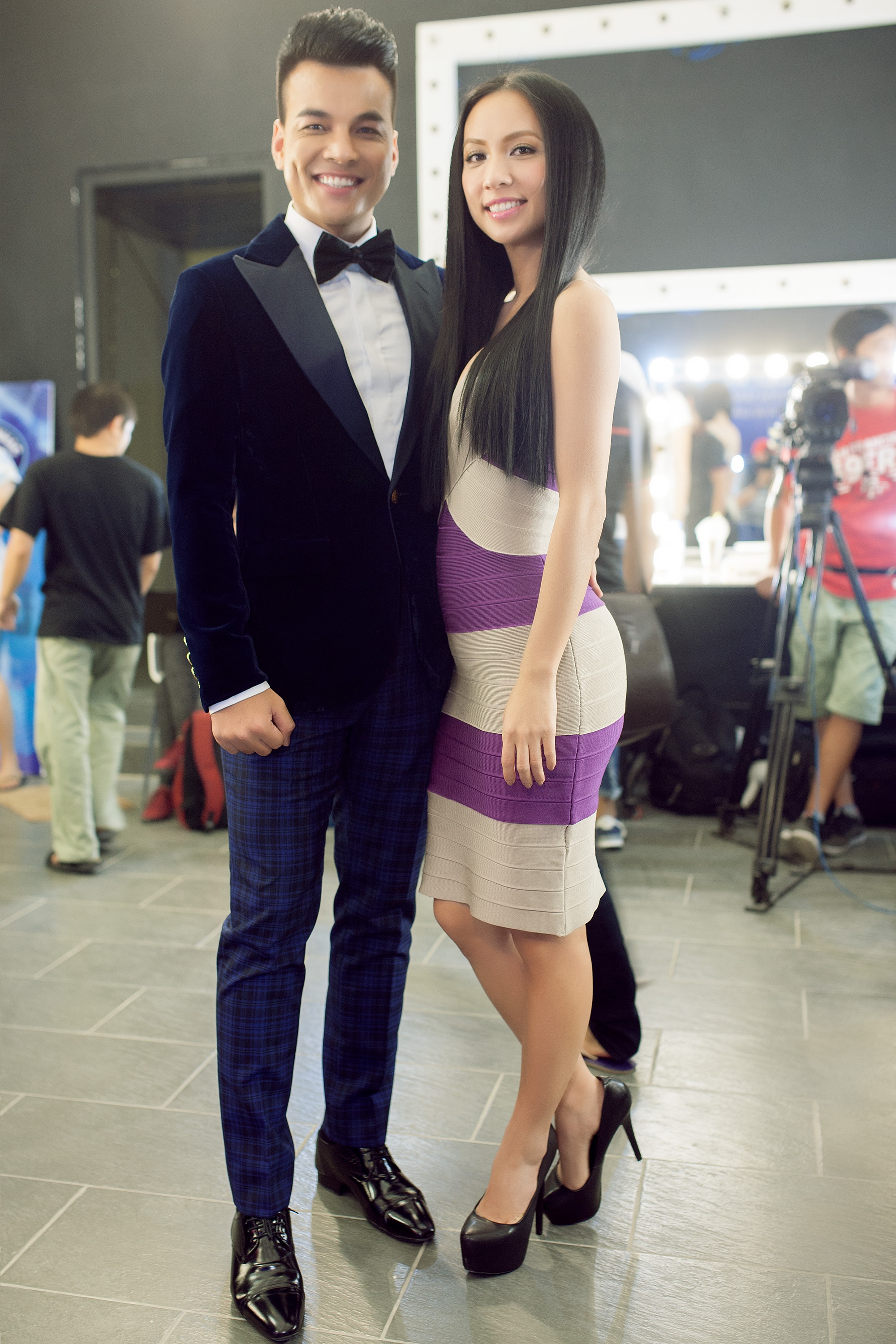 | Huyền Ny hội ngộ MC Duy Hải, người vừa cùng cô đảm nhận vai trò dẫn chương trình sự kiện Đêm hội chân dài.